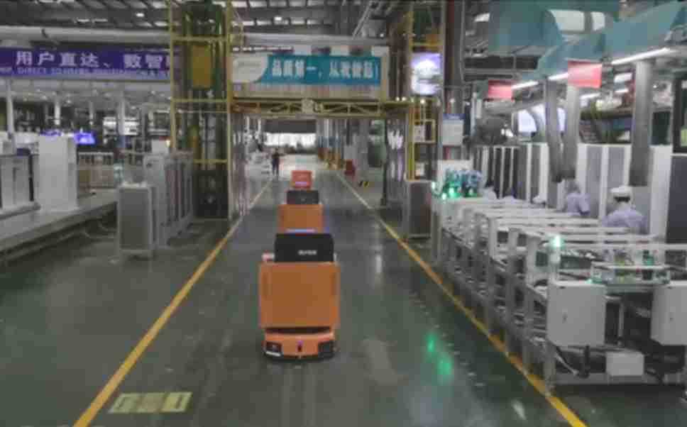 为车载冰箱物流配送打造的智能解决方案,,包含产中物流通过潜伏举升AMR搬运至线边,,产后成品物流智能仓储,,流程包含产中物流智能齐套入库,,线边安灯叫料AMR智能配送至线边,,成品入库、、、出库,,通过无人堆高车机器人,,智能仓储管理替代人工作业管理,,实现更高存储、、更高效率、、、更具柔性化的解决方案。。。。